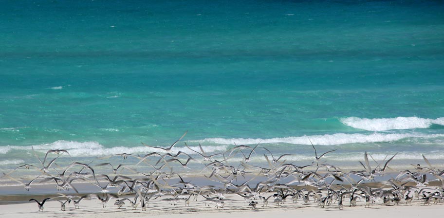 群れは紙吹雪のように空を舞い、一瞬行き先に迷った後、すぐそばの海岸線へと舞い戻った。