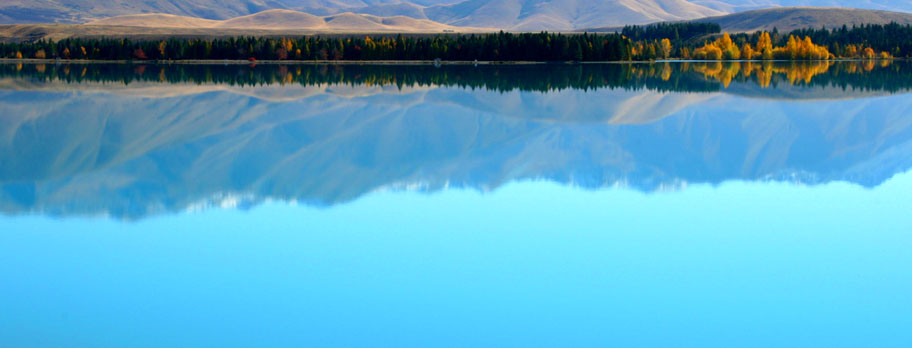 突然目に飛び込んできた緑の直線‥鏡のような湖面に映った対岸の森のラインだ。